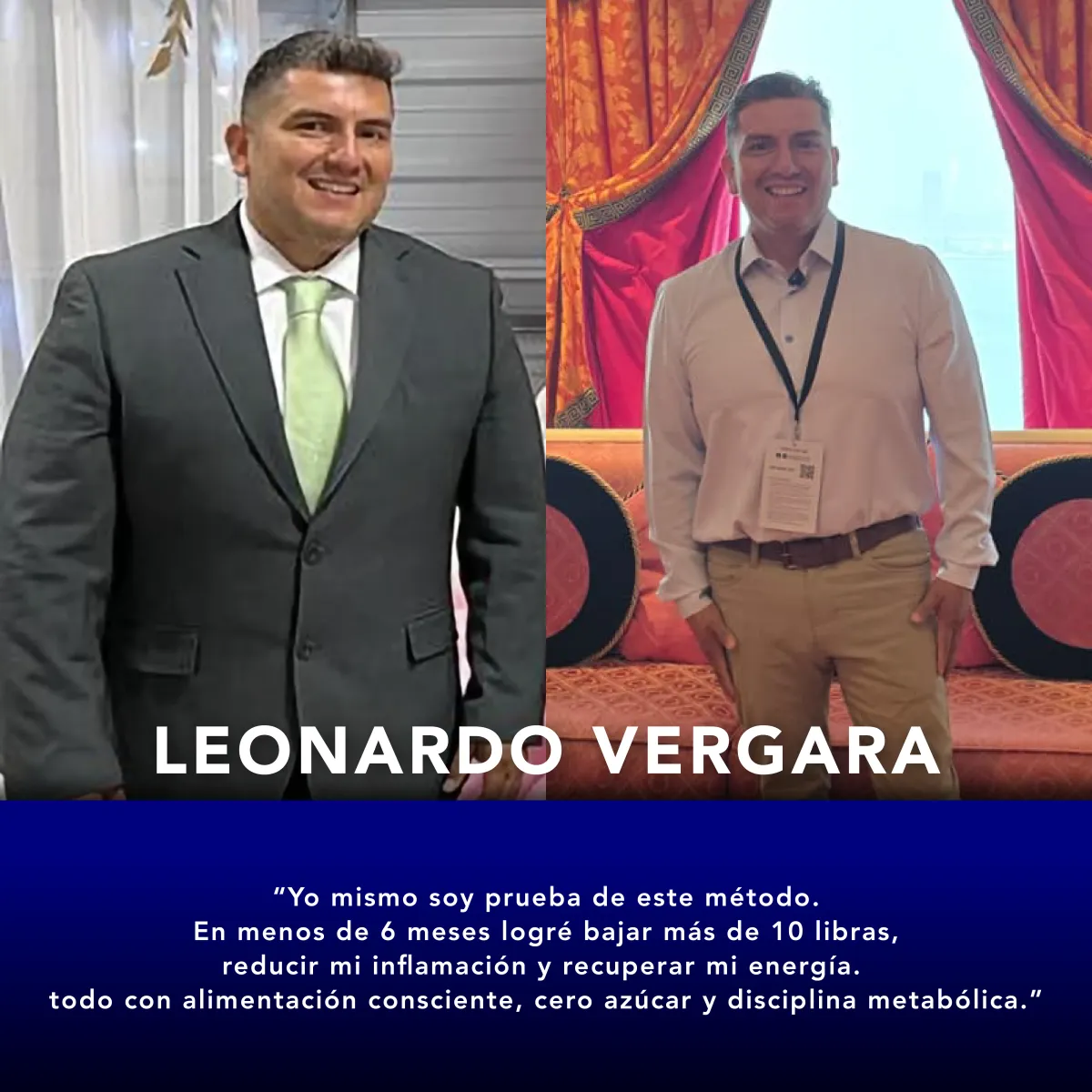 El Dr. Leonardo Vergara es médico especializado en longevidad, metabolismo y salud integral, reconocido por transformar la manera en que las personas entienden y recuperan su salud desde la raíz.